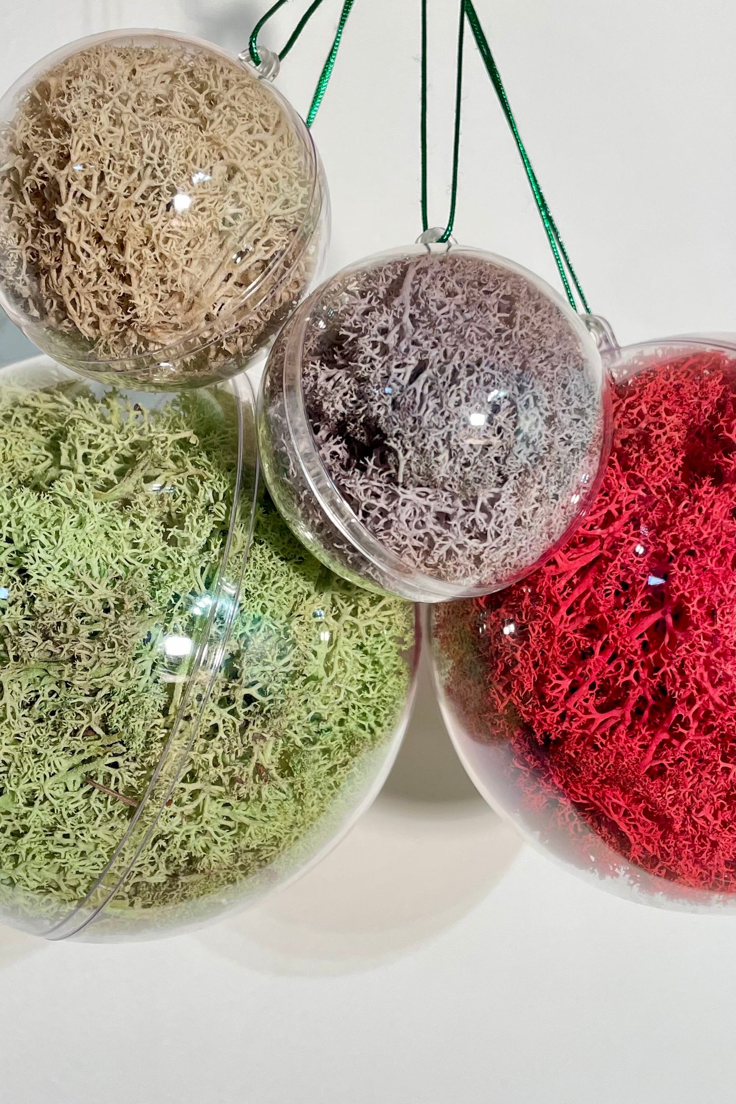 C'est exactement ce que notre Boule décorative vous apporte. Du lichen coloré, soigneusement installé dans des boules, apportera une touche apaisante de verdure à vos décorations festives, sans le moindre effort d’entretien.