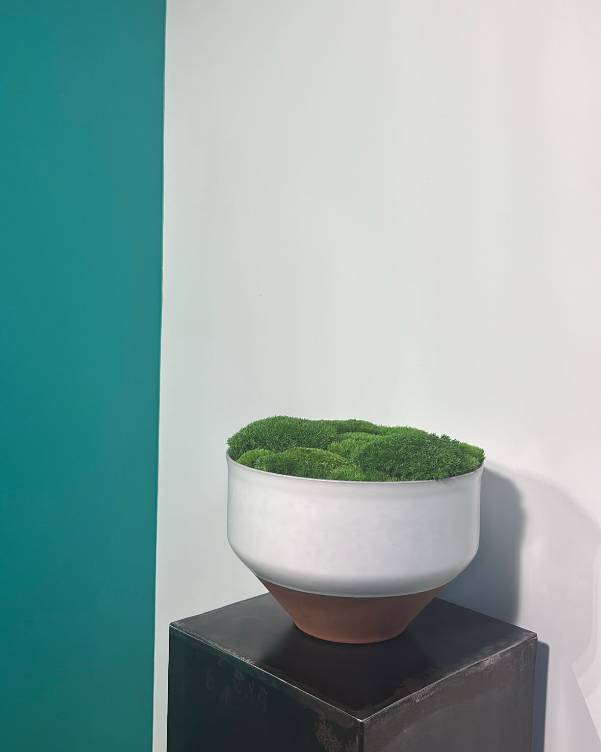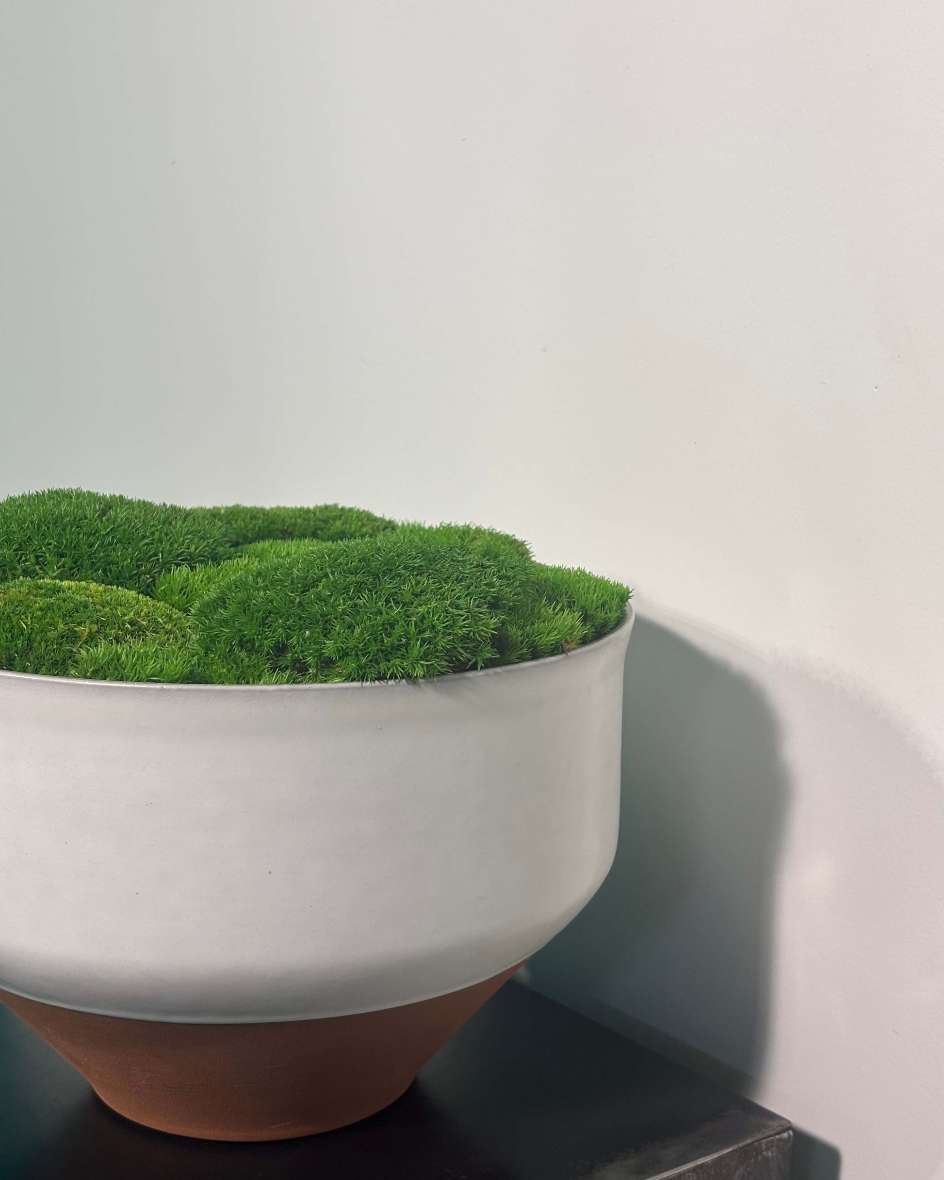 Imaginez de la mousse naturelle dans une poterie zen pour un style au design minimaliste.