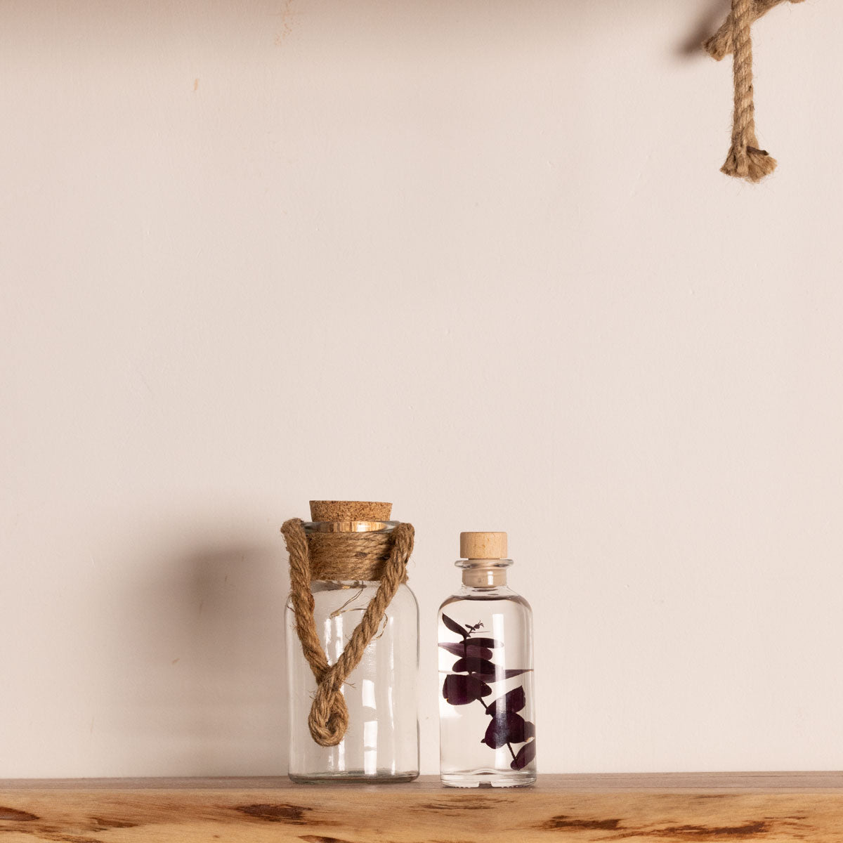 Flacon : verre apothicaire, cylindrique ou rectangulaire avec bouchon en bois.