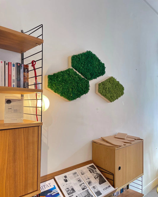 Mosaïque 3 tableaux végétaux stabilisés hexagonaux